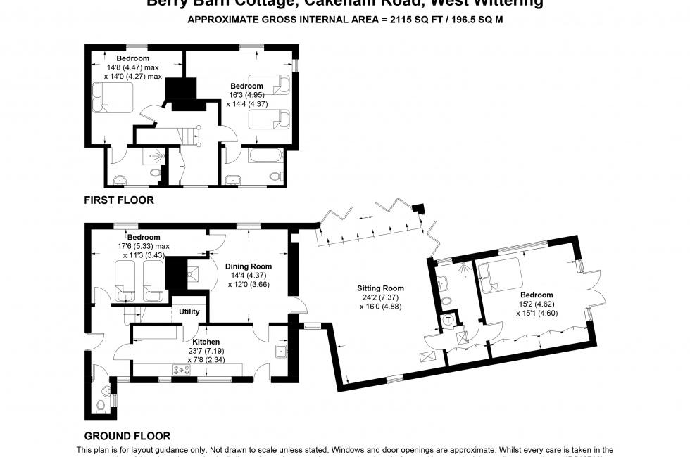 Bedroom 3: Two 3' single beds. Ensuite bathroom with bath and hand held shower.