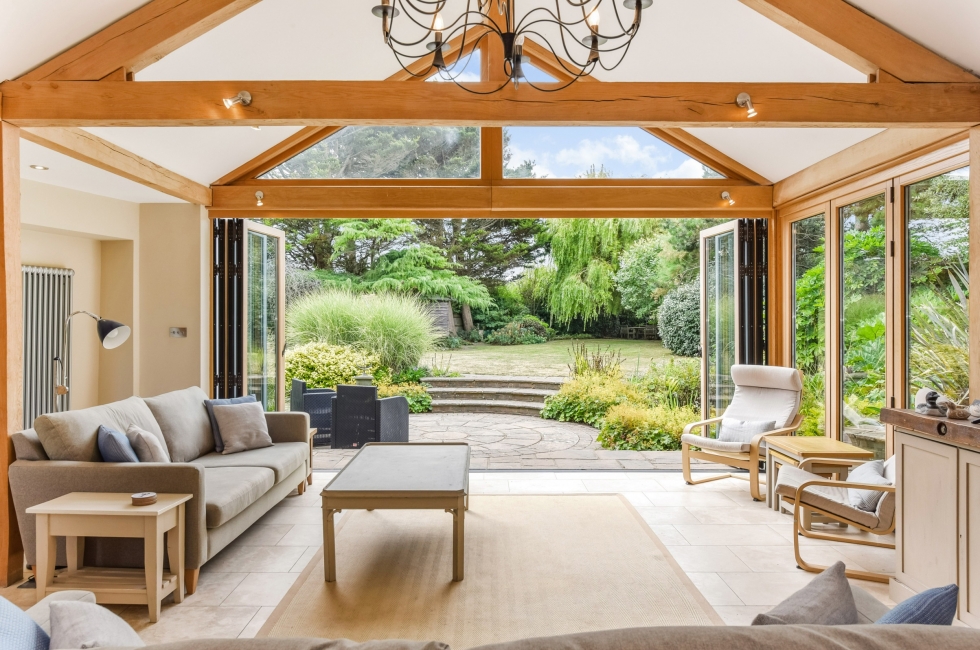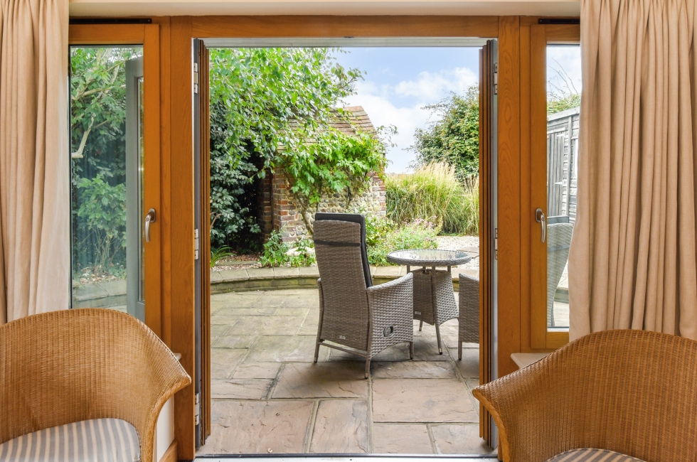 Sitting room: Large lounge with full length windows looking out over the garden area, TV with Freeview, Netflix and Prime video, and CD/IPOD player.