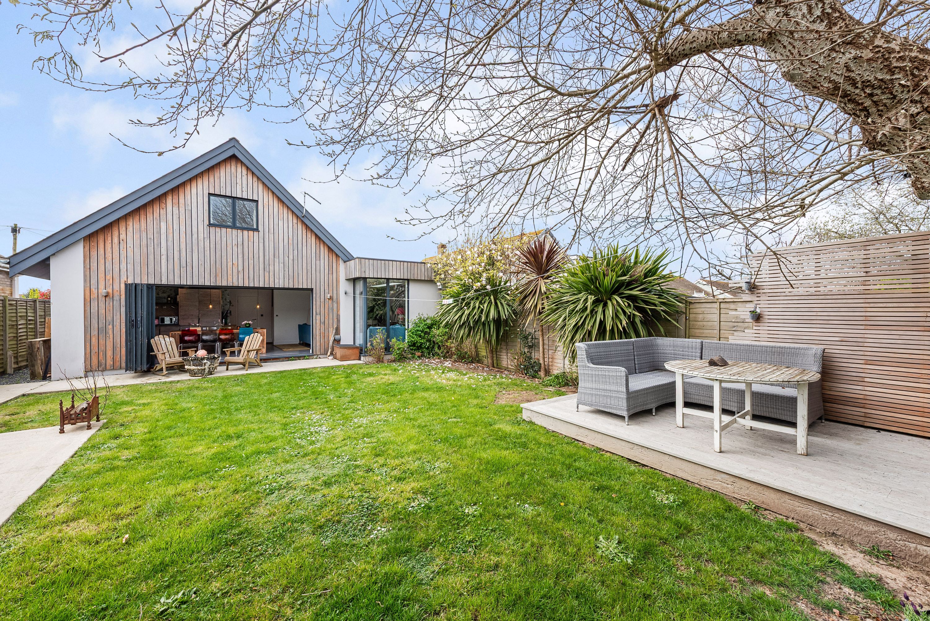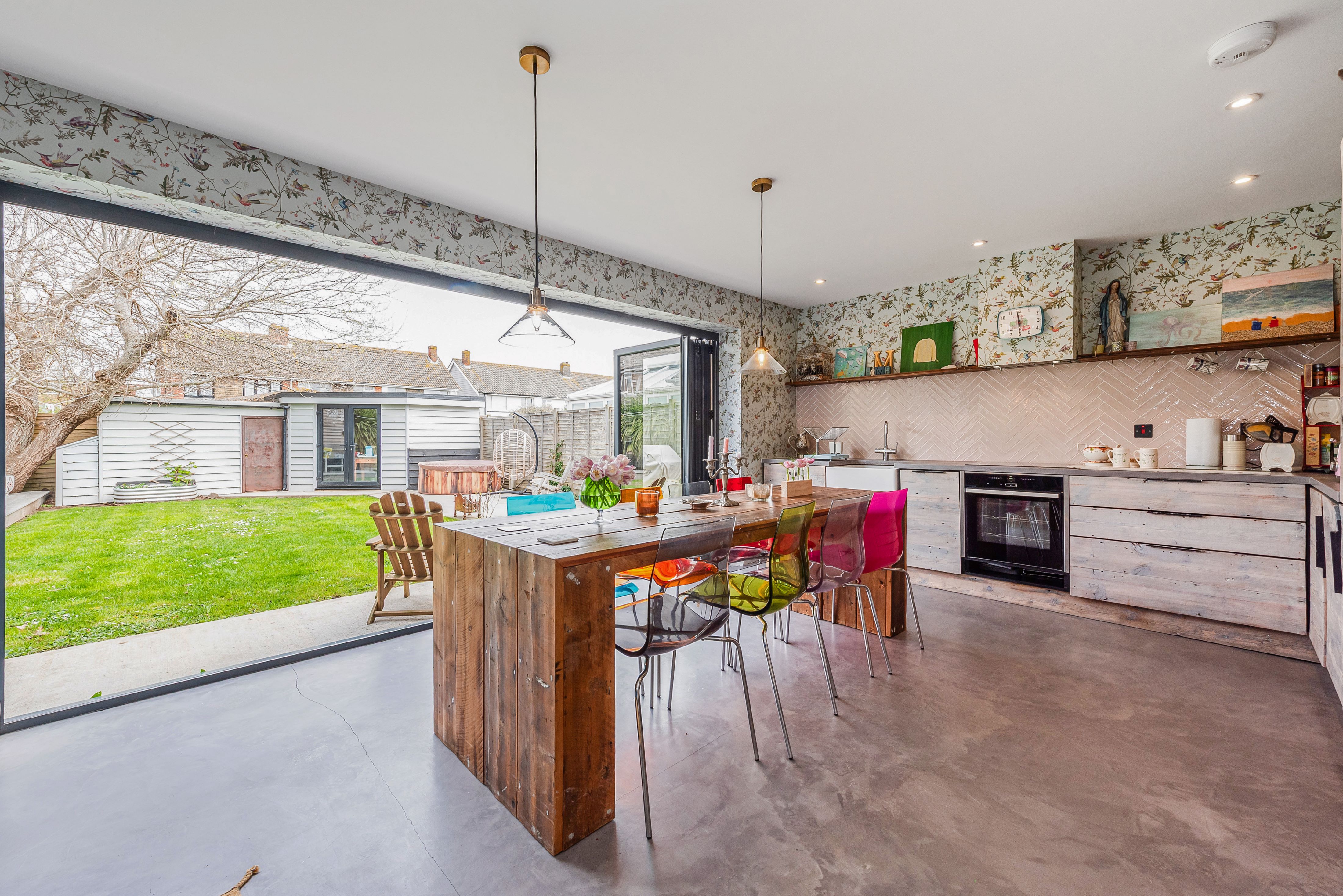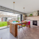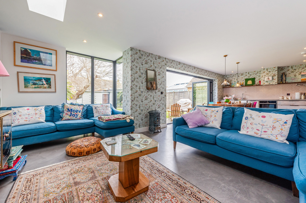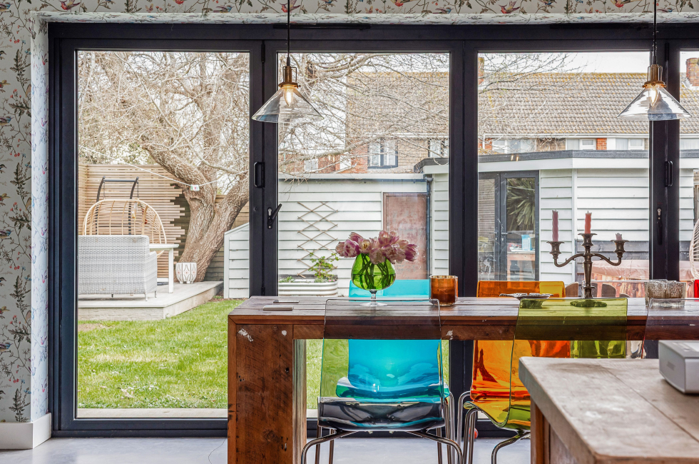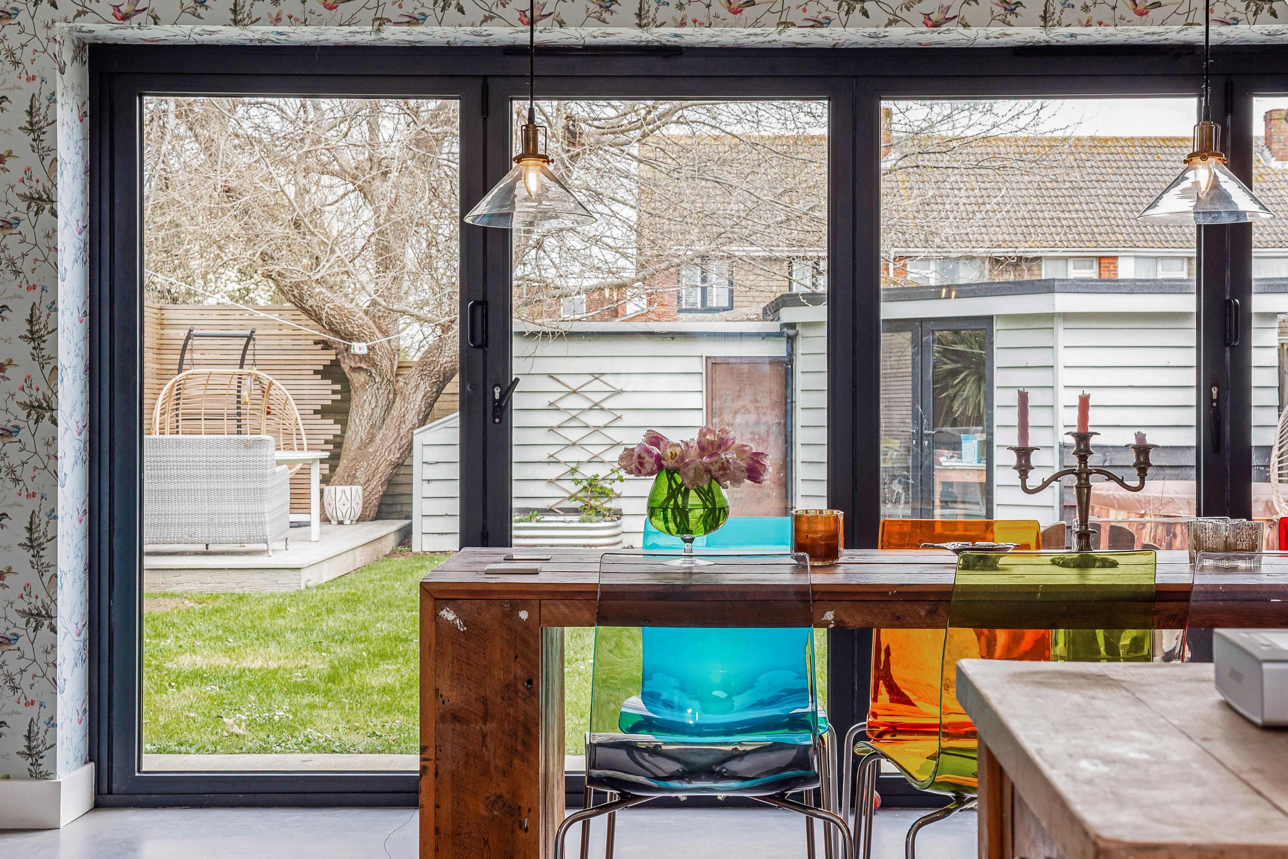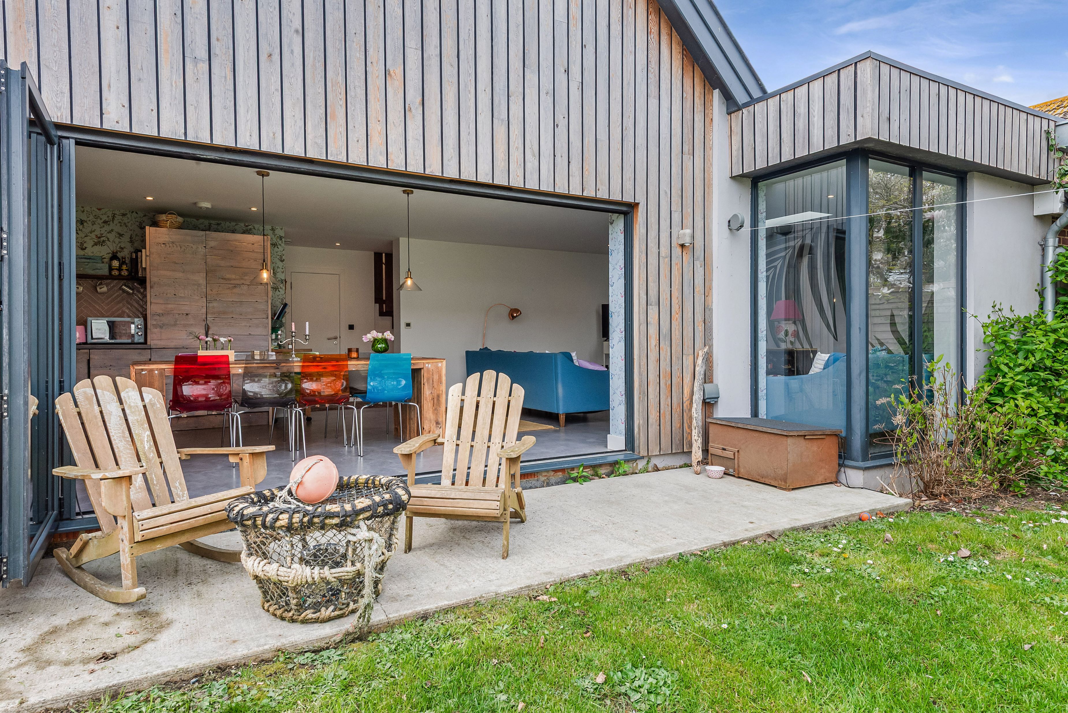 Large bifold doors open onto an enclosed garden, with removable ramps providing smooth, step-free access—making the ground floor and outdoor space easy to enjoy for everyone.