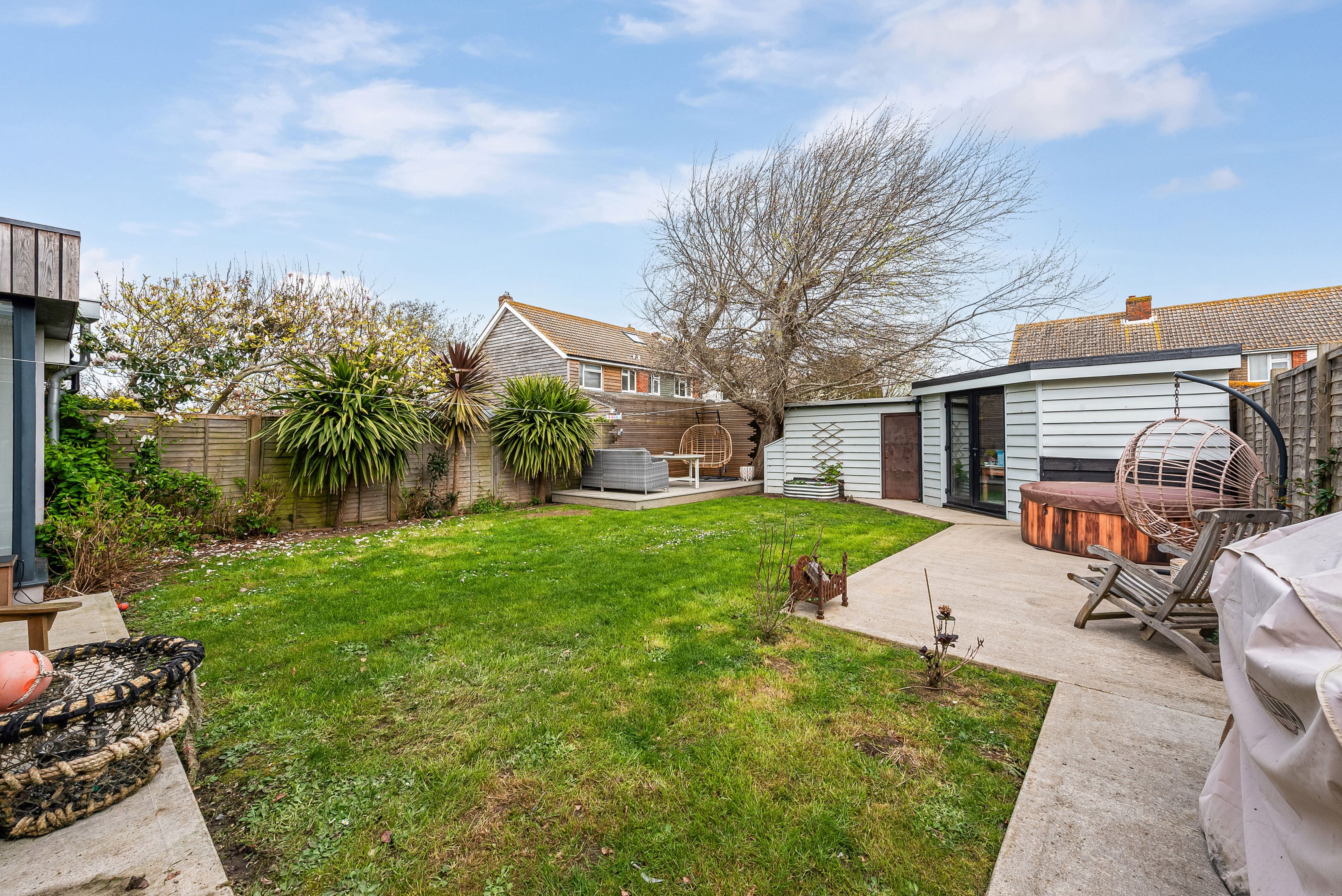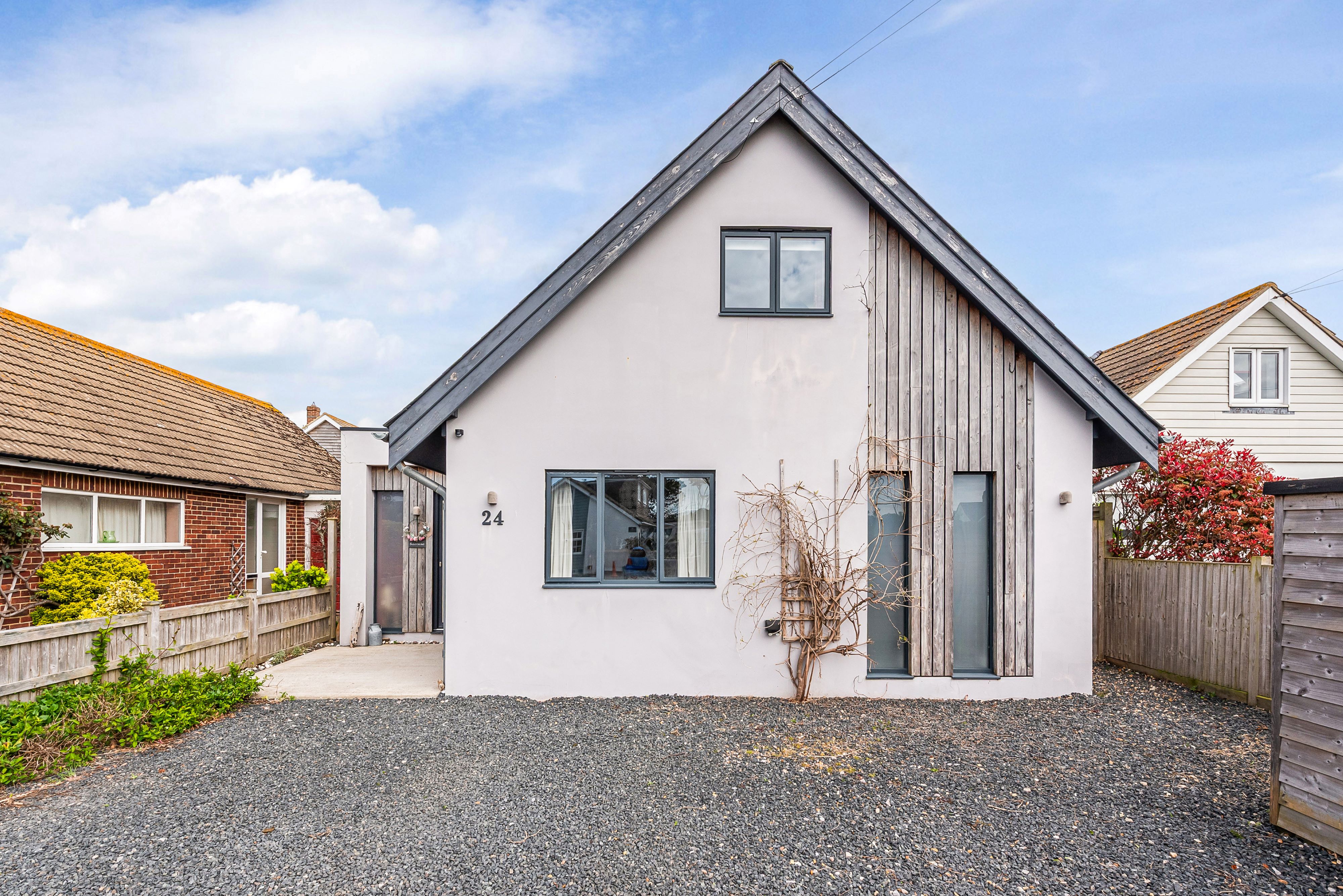 This stylish, modern three-bedroom home is tucked away in a quiet cul-de-sac just 150 metres from the shoreline. At its heart is a light-filled, open-plan living space, bringing together a well-equipped kitchen, a generous dining area, and comfortable sofas—perfect for unwinding in front of the TV or settling in for a relaxed evening of games.