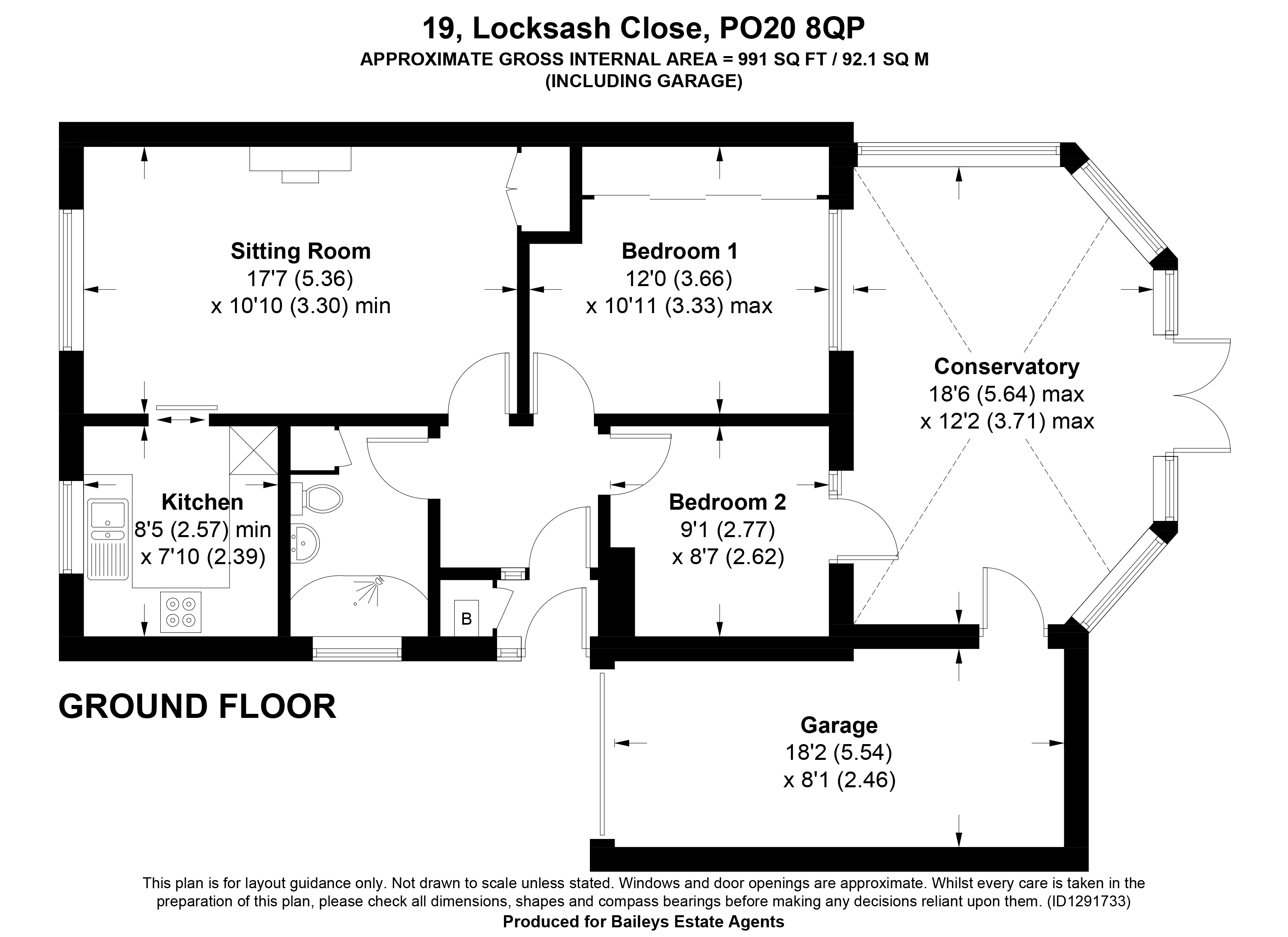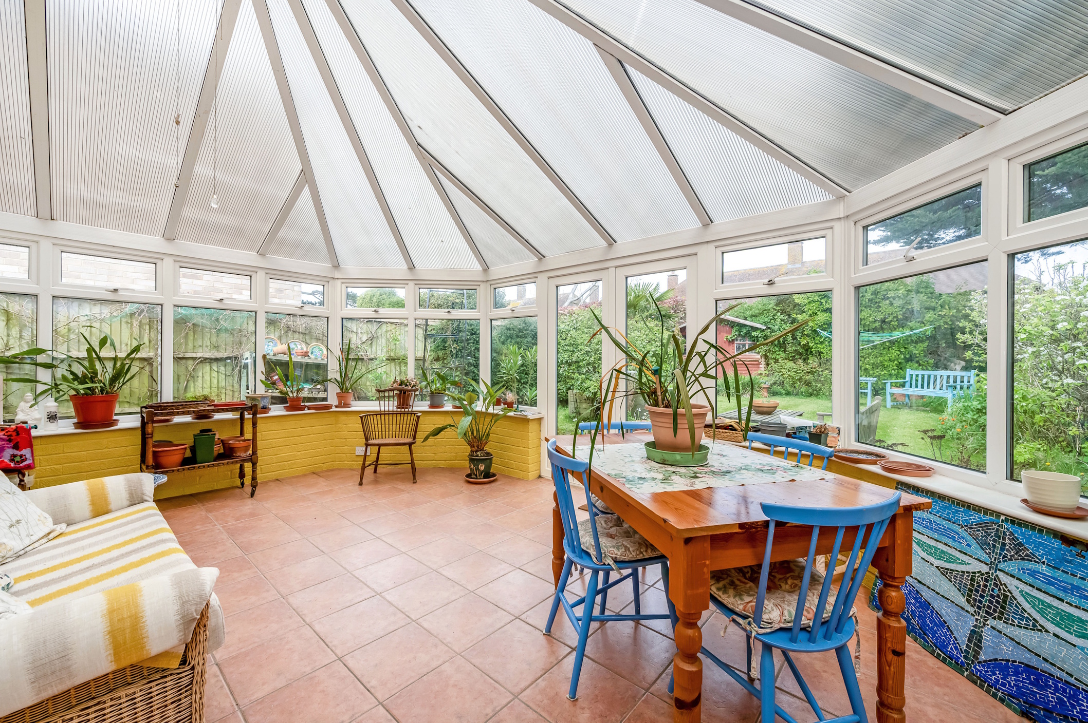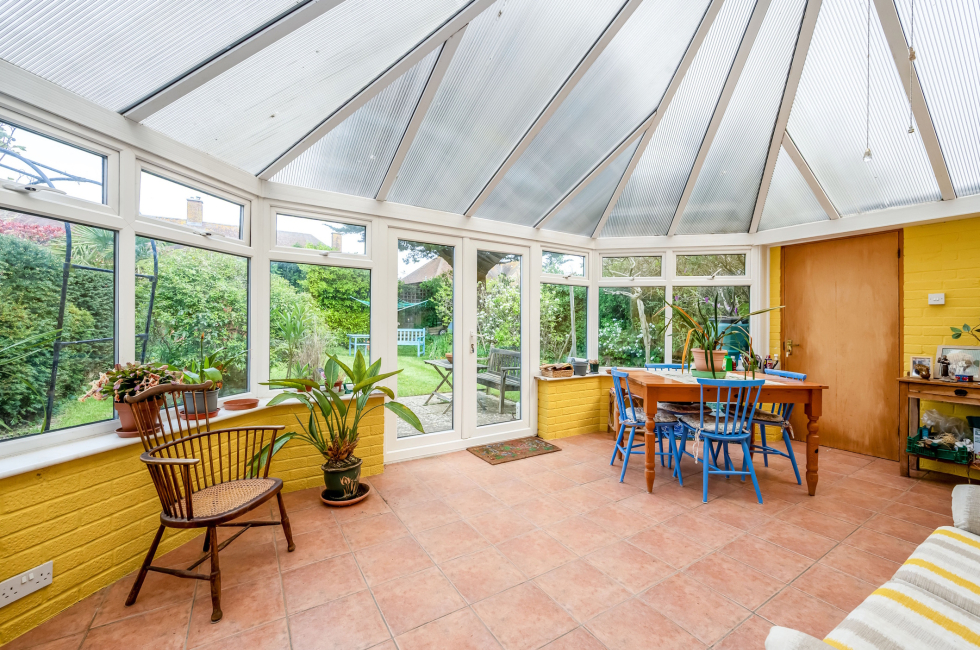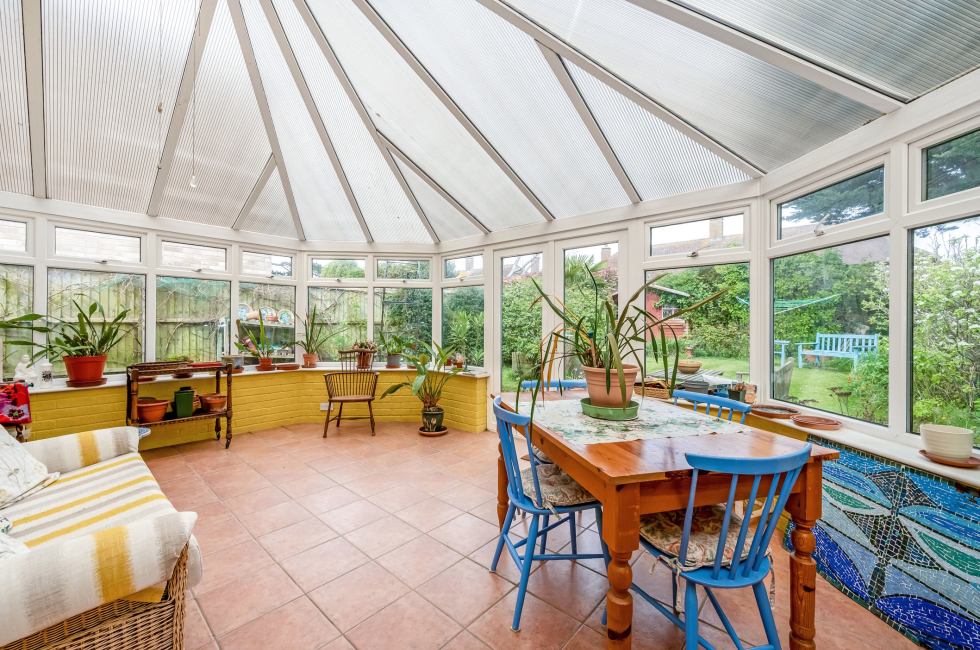 Conservatory: Part brick construction with double glazed units and polycarbonate vaulted roof. Quarry tiled flooring. Radiator. Double doors onto rear garden. Door into garage.