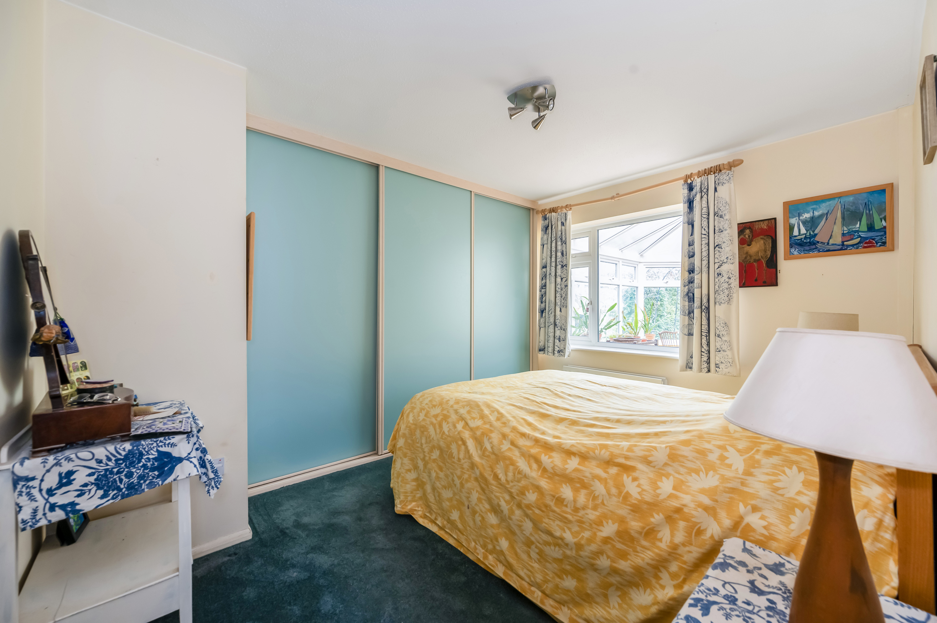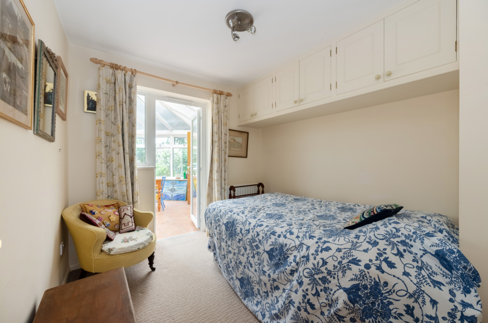 Bedroom Two: Radiator. high level storage cupboard. Door in to Conservatory.