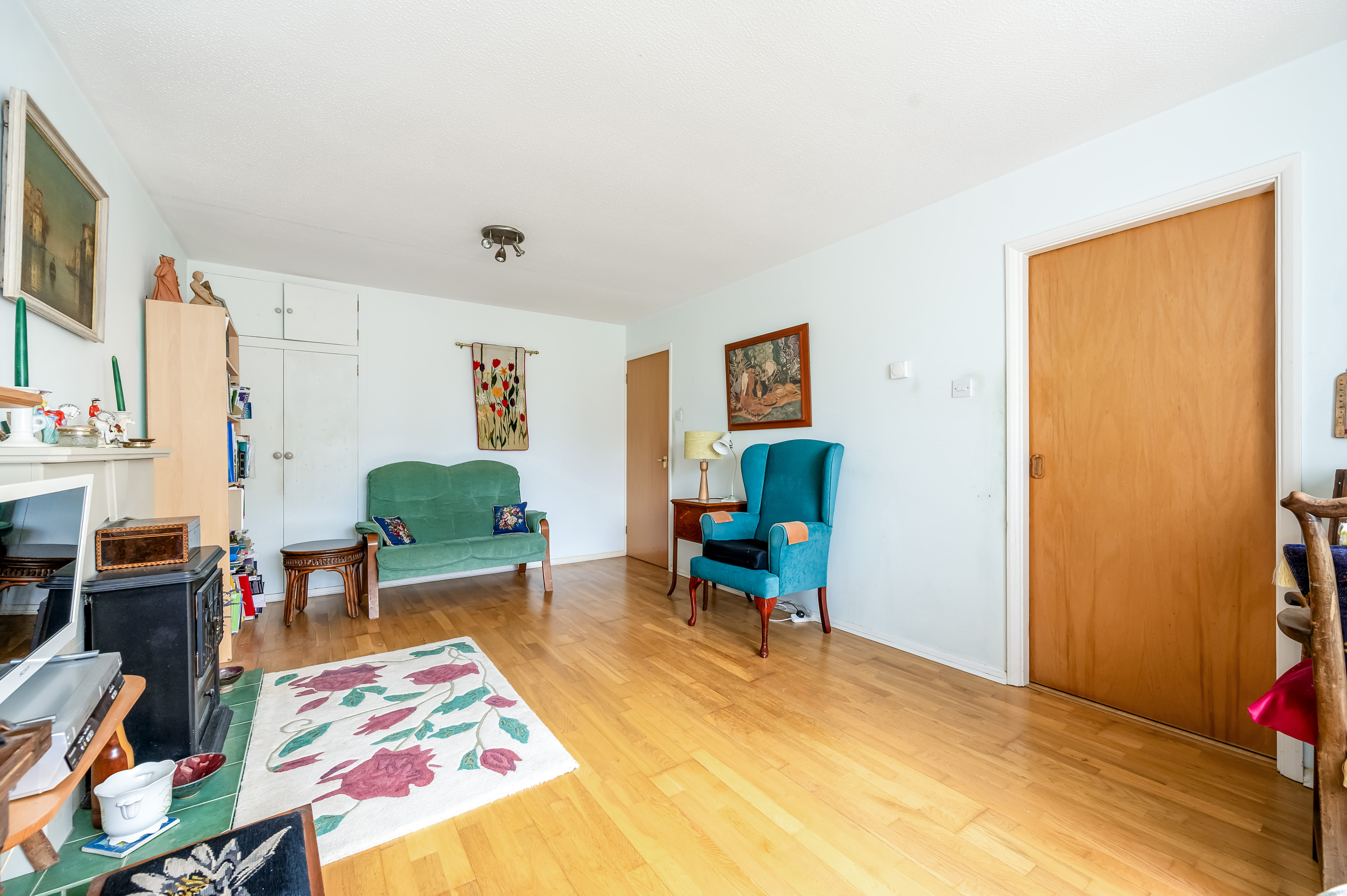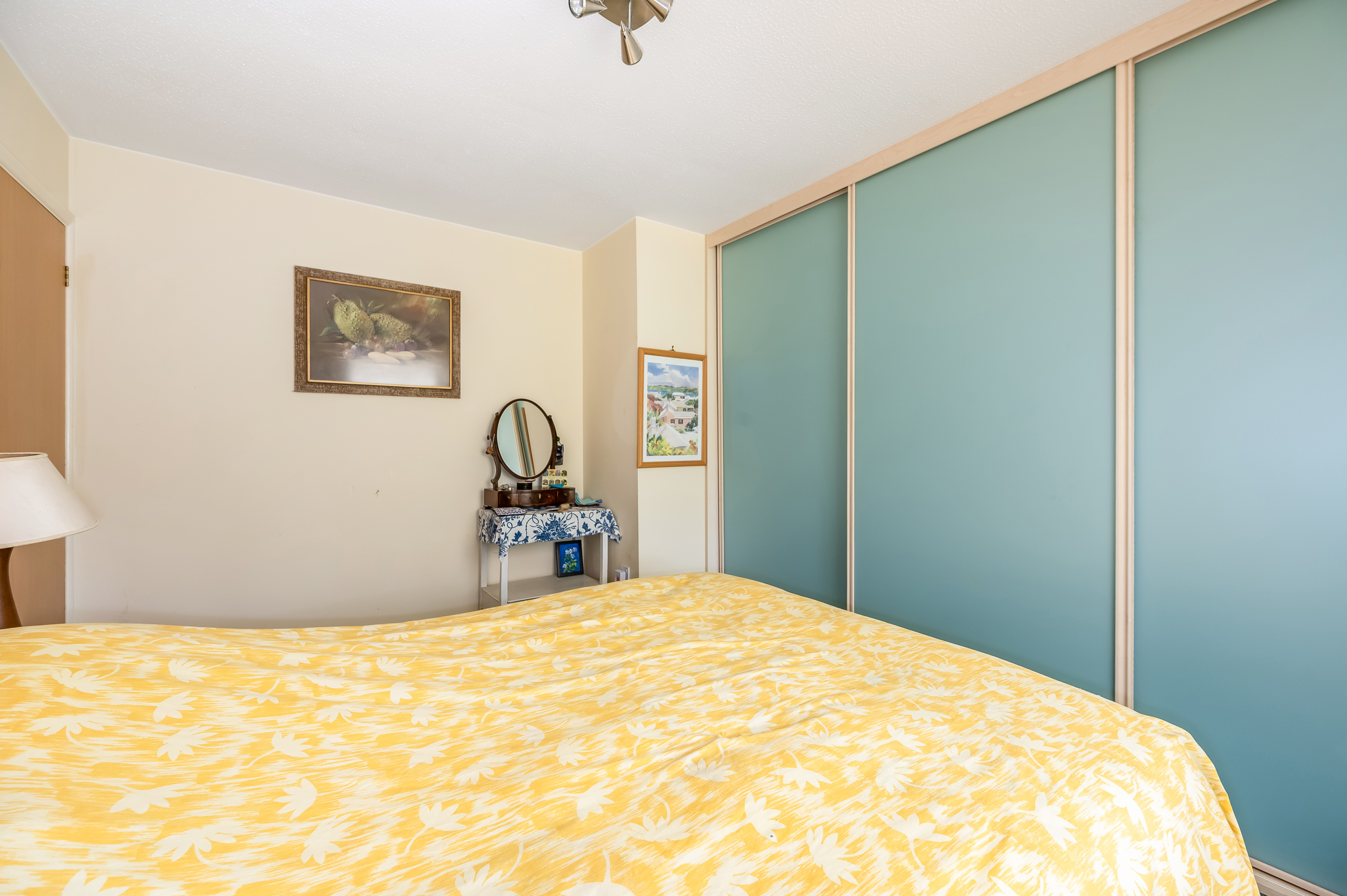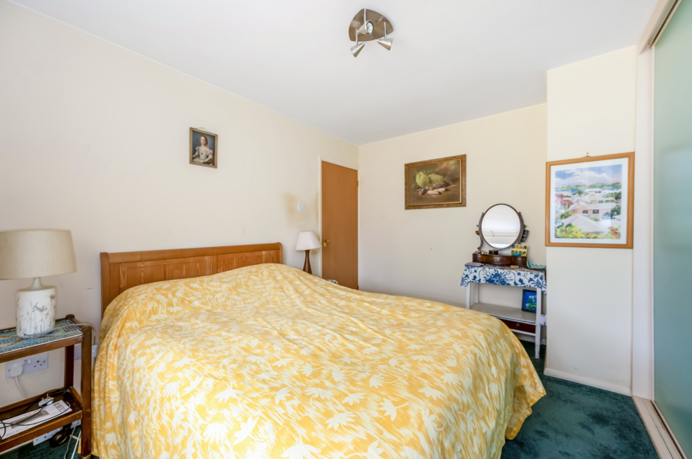 Bedroom One: Built in wardrobe cupboards along one wall. Radiator.