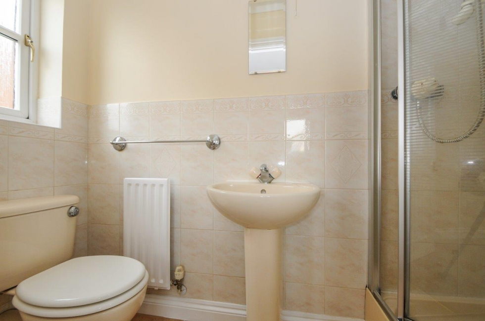 EN-SUITE Comprising a shower, WC and wash basin. Part tiled with light/shaver point.