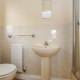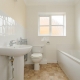 FAMILY BATHROOM Panelled bath with Mira shower, WC and washbasin. Part tiled walls. Light/shaver point.
