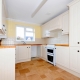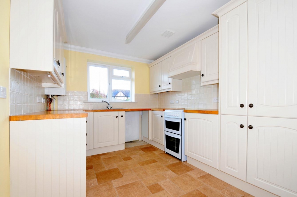 KITCHEN: 11'4" x 8'8". (3.45m x 2.64m) (E) Cream coloured "Shaker" style units with solid wood work surfaces including a stainless steel sink unit, further drawer and base cupboards plus useful larder unit and five wall cupboards. Space cooker and space for fridge and washing machine. Part tiled walls. Wall mounted 'Worcester' gas fired boiler for domestic hot water and central heating. Radiator.