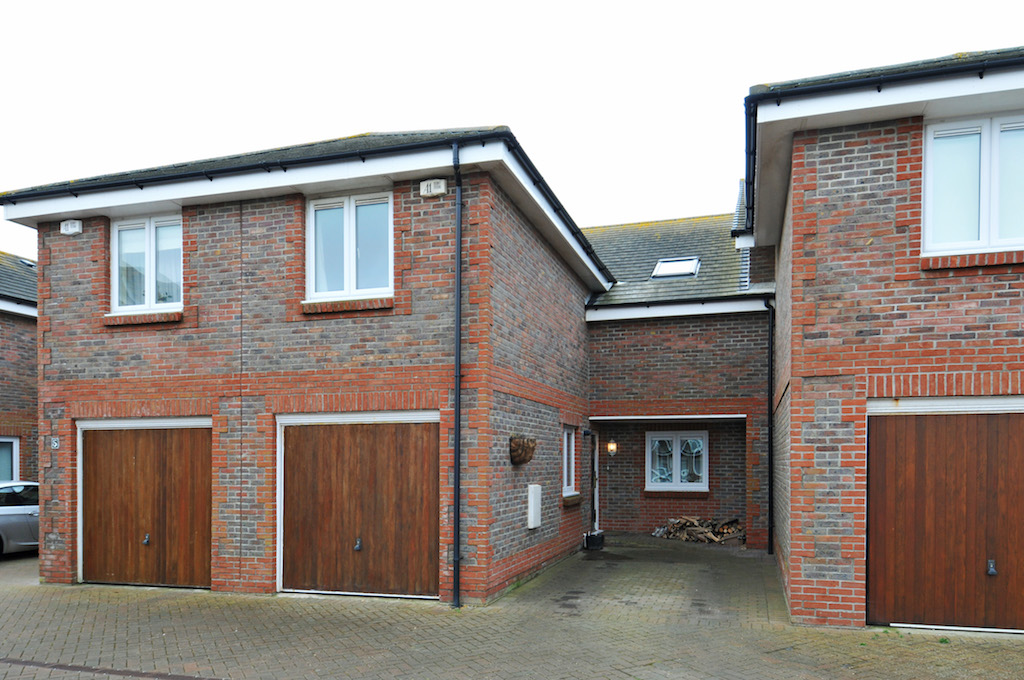 OUTSIDE Integral GARAGE 17'4" X 8'10" (5.28m x 2.69m) with hardwood up and over door, internal door to entrance hall. Additional CAR SPACE.