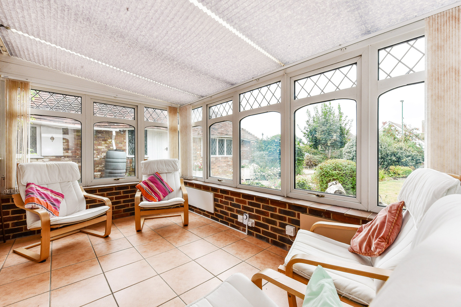 Conservatory. (S, W and E) Part brick construction with Upvc framed double glazed windows. Electric radiators. Ceramic tiled floor. Door to the garden.